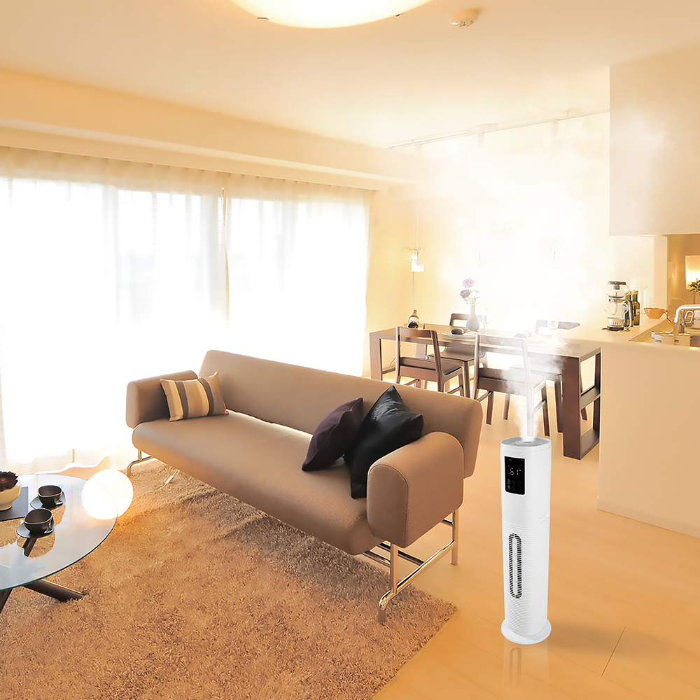 ・タンク容量8L・最大加湿量:350ml/h・連続加湿時間:約23時間(最大運転時)・UVCライト付きで除菌可能・湿度設定運転機能付き・4段階ミスト量調整・移動に便利なキャスター付き・おやすみモード・上部給水式採用・12時間OFFタイマー(1時間単位設定)・アロマオイル対応